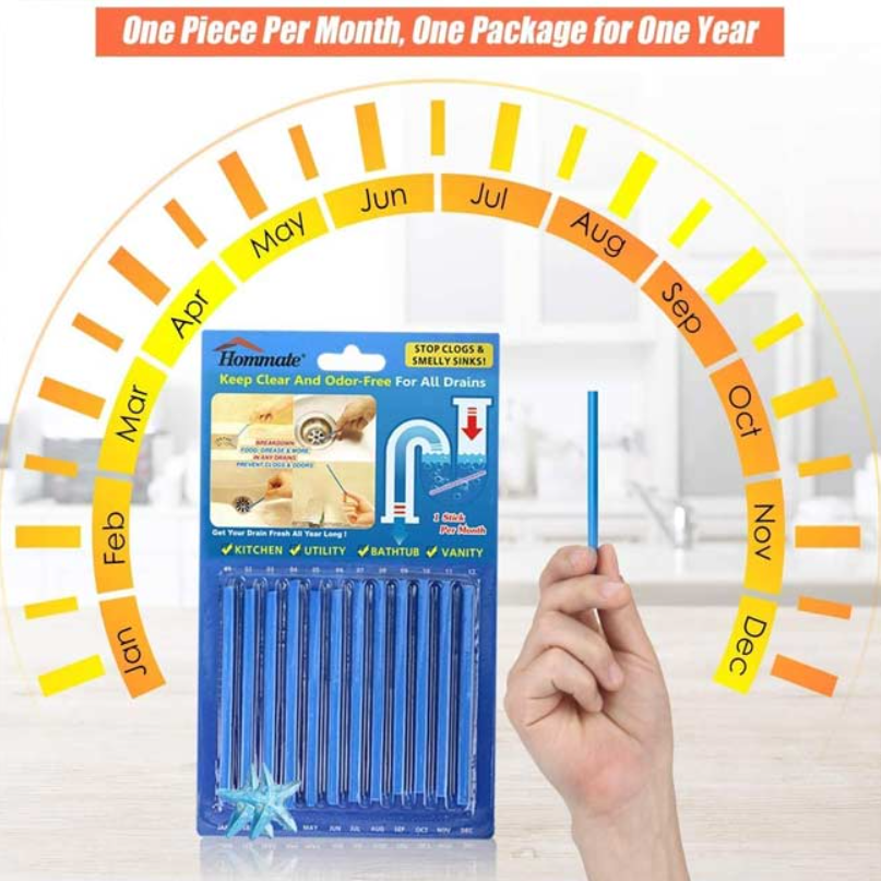 PERFECT ALS DEEL VAN EENmaandelijkse afvoerreinigingsroutine . Traditioneel gebruik: Eenmaal per maand, laat de strip in de afvoer vallen voor reiniging en geurverwijdering. Perfect voor keuken- en badkamerafvoeren.