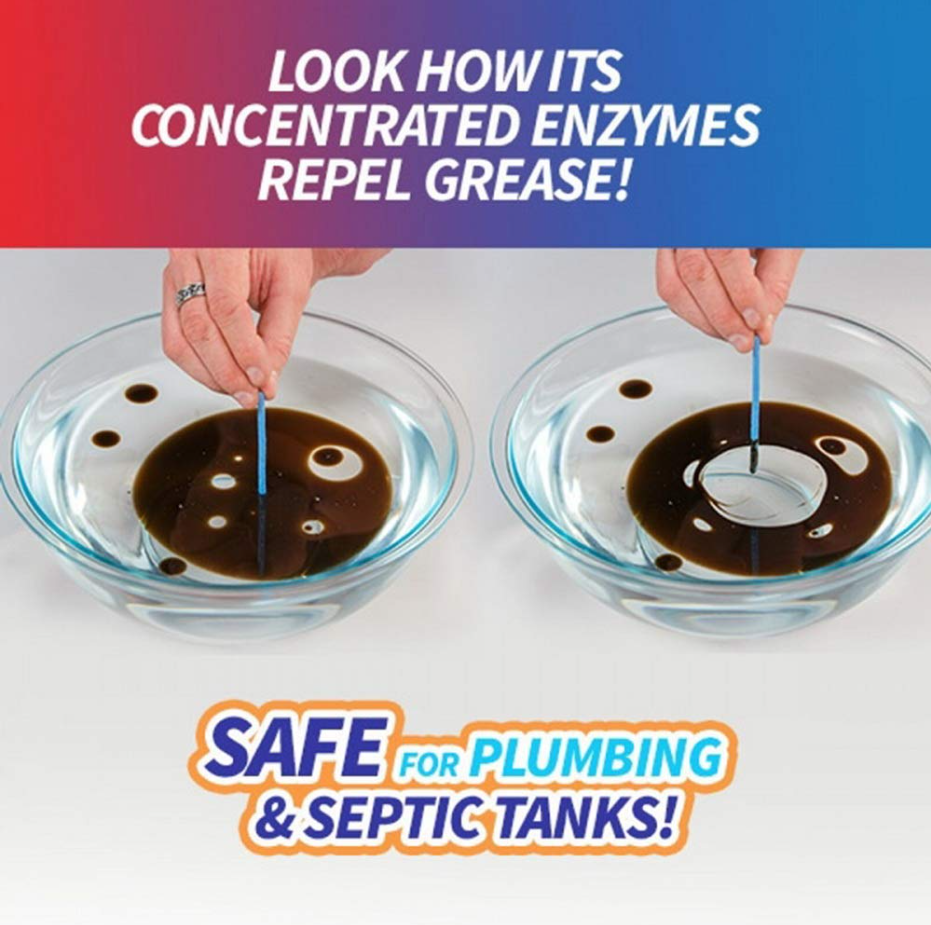 VERWIJDERT EN VERTEERT Het vuil dat vastzit in uw afvoer heeft geen schijn van kans tegen enzymen.Vet, olie, vetten, schuim, eten : alles is binnen enkele minuten weg. Hoe is dat voor eenvoudig afvoeronderhoud?