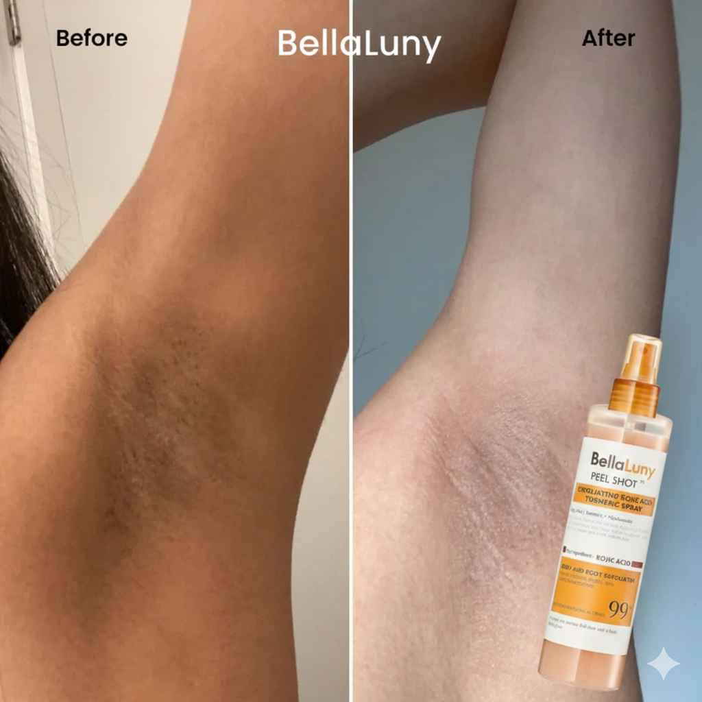 • Targets dark spots on underarms, inner thighs, neck, and back caused by friction or buildup.